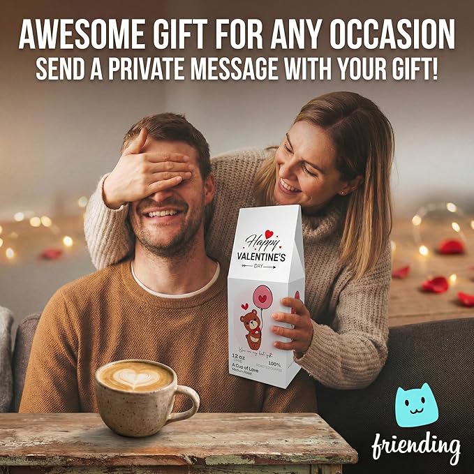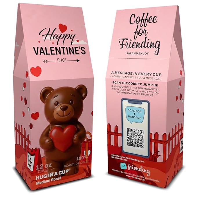 Hug In a Cup – Friending 12 oz Coffee, Medium Roast – Premium Brazilian Single Origin Arabica Beans – Made in USA – Coffee Gift with Private QR Love Message