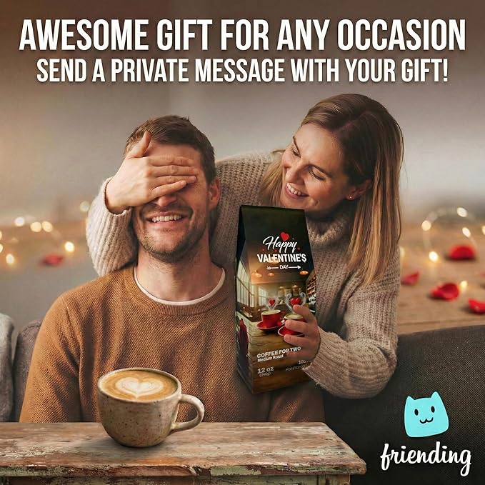 Coffee For Two – Friending 12 oz Coffee, Medium Roast – Premium Brazilian Single Origin Arabica Beans – Made in USA – Coffee Gift with Private QR Love Message